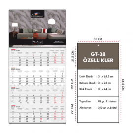 GT-08 Gemici Takvimi 2 Parça Spiralli (31x66,5cm)